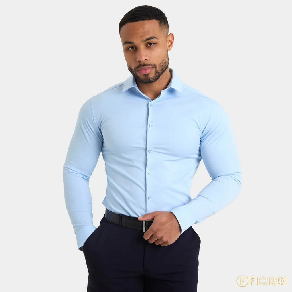 Conheça a Camisa Evo Tech, a camisa social masculina que une elegância, conforto e tecnologia. Feita com um tecido inovador, ela não amassa, não precisa passar e oferece um caimento impecável.