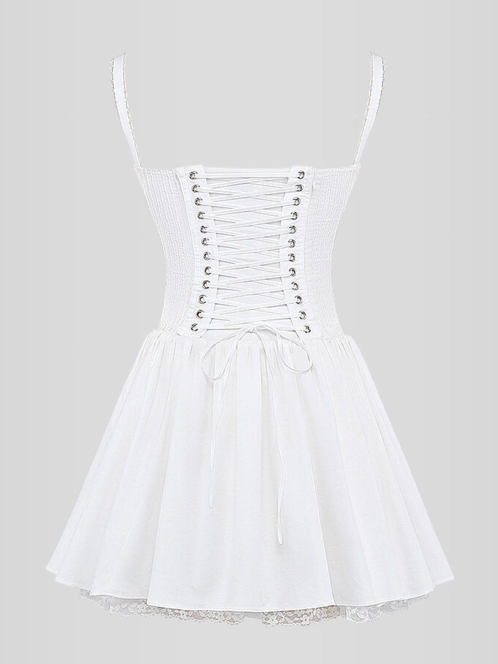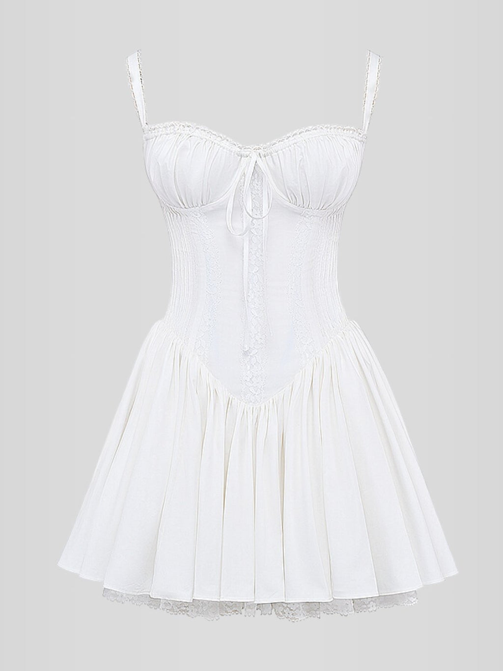 - Design encantador: destaque para o babado delicado e a amarração que confere um ar romântico e contemporâneo ao vestido curto.